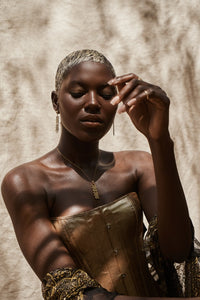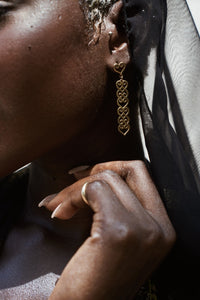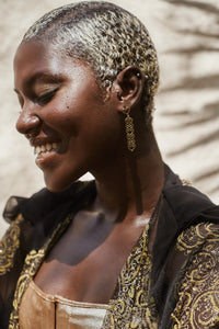 The "Cocoa" Earrings encapsulate Ghana's cocoa farmers and their commitment to fair trade chocolates. Paying tribute, these earrings feature two Adinkra symbols to represent the past and the need for sustenance. Representing a connection between man and nature, these meaningful earrings promote eco-consciousness and a hopeful future. Adorned with the "Cocoa Amulet" Earrings, you honor the cocoa farmers of Ghana, creating a positive legacy for generations. Sahmani jewellery is inspired by African mythology, is embedded with personal meaning and impeccable beauty. Crafted from ancient Ghanaian Adinkra symbols, each piece is named, narrated, and sung with reverence.