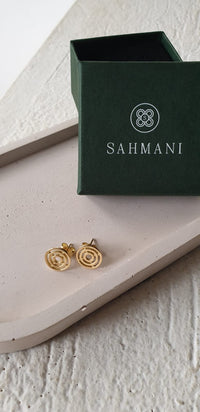 Inspired by an African mythology that embodies universal truth, Sahmani jewellery pieces are infused with profound meaning and captivating beauty. Drawing inspiration from ancient Ghanaian Adinkra symbols, believed to be divine gifts sent to an ancient warrior king, each symbol carries its own name, history, and significance, making the Inner Circle Earrings a cherished embodiment of art and symbolism.