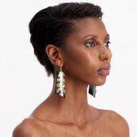 Brass embellished hand-carved Horn earrings with handmade brass hooks.