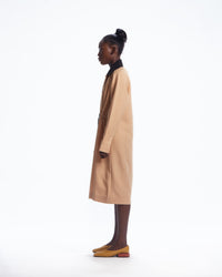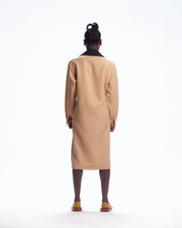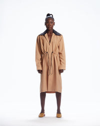 AJABENG is a pioneering Ghanaian fashion house that combines minimalism with the intricate art and culture of Africa. Drawing from the captivating geometry of art deco architecture, vivid African colors, and Accra's streetwear scene, this gender-neutral brand provides a timeless look. The AJABENG Adode Shirt Dress is made of wool-linen blend fabric, with an elastic drawstring and plastic toggle. It requires dry cleaning. Crafted in Ghana, this dress is a perfect balance of femininity and masculinity, and part of AJABENG's dedication to sustainability, including ethical sourcing, promoting young African talent, and using biodegradable materials in their designs.