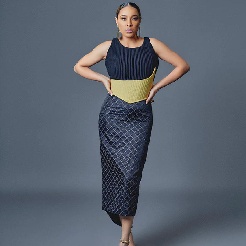 3-piece charmeuse textured sleeve blouse, half-cut overbust shaped corset, tulip skirt with fabric fold origami detail. Add a fiercely feminine touch to your look with this corset. Style This with barely-there heels to complete the look.