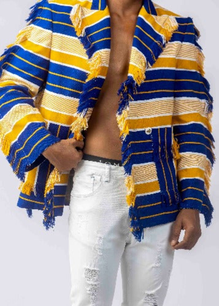 Busumuru Tassel Detailed Jacket - Blue/Yellow | BOYEDOE | ADJOAA