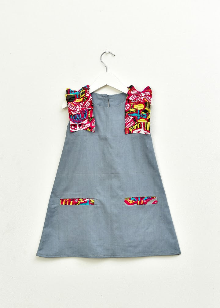 Aimas Kudu Dress with Ankara print ruffle sleeve detail