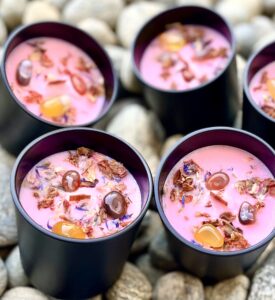 This candle is hand-poured in Ghana, using natural soy wax and topped off with Rose petals, lavender buds and aromatherapy crystals in a high quality matte glass jar. Scented with high quality essential oils with Key Notes of Citrus, Berry and Cherry. Finished cleanly with a double layered crackling wooden wick. They are a thoughtful gift for anyone and any occasion.