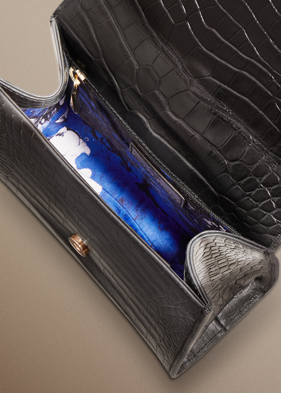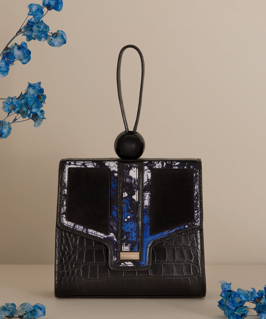 Clara & Violet is a brand for the bold, sophisticated and fashion-forward woman. Inspired by African heritage, their accessories are crafted in London with beautiful handmade African fabrics. Founded by Chinyelum Davidson, the goal is to increase awareness for fashion made in and inspired by Africa. This clutch is made from genuine croc leather, lined with black suede for luxuriousness and adorned with handmade adire cotton. Take your evening dinners up a notch with this top handle!
