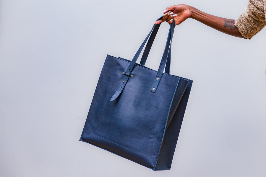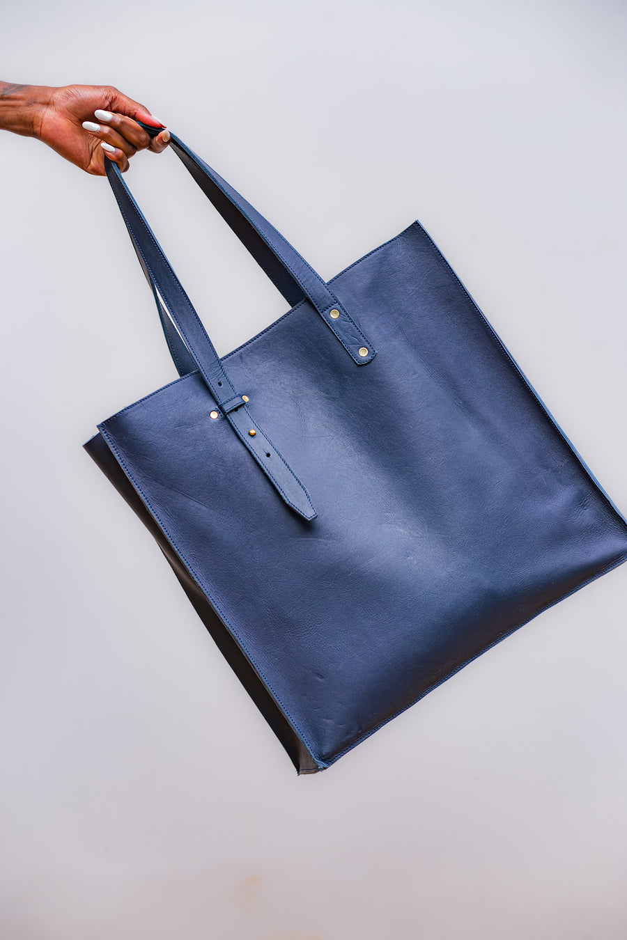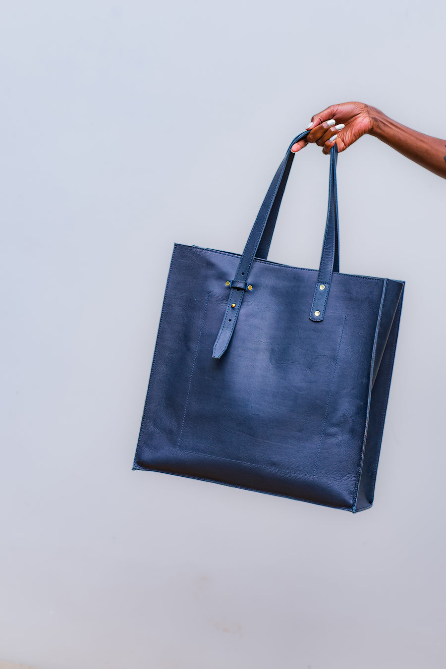 TUG is a Kenyan Fashion designer whose materials are ethically and regionally procured from factory off-cuts, which helps to lessen environmental pollution, in the spirit of being eco-friendly. The Tote bag is made of genuine leather with a Plain appearance. The bag features notebook pockets and is roomy enough to accommodate a laptop and tablet. It has a Zip closing with 100% Brass hardware. Bag can be be used to match either a casual style or cooperate outfit. Part of Collection 3.0, this tote bag is a tribute to the cosmopolitan energy and diverse tapestry of Kenya's capital city, drawing inspiration from the bustling streets, beautiful weather and huge community that characterizes Nairobi.