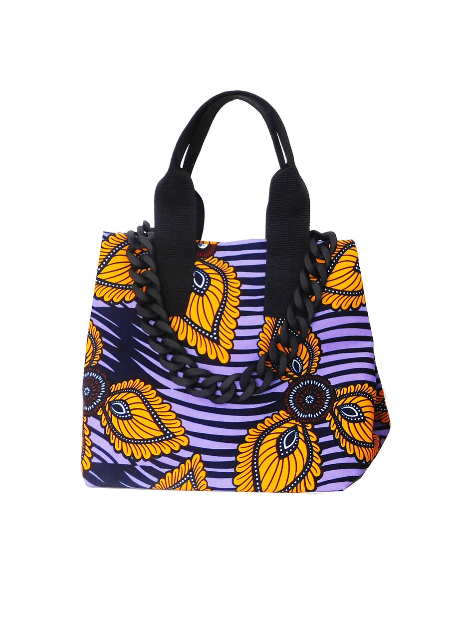 Add flair to your everyday look with this dazzling Essie Tote Bag! It's available in two exquisite prints - an elegant purple and an alluring orange - and has handy features like sturdy hand-held straps, an Acrylic black chain for shoulder carrying, plus an extendable capacity. You'll also find a zipped inner pocket and an outer pocket for maximum convenience, plus it comes with a free gift bandana! Influenced by classic and vintage designs, this piece is a masterpiece from Erzumah, crafted to express femininity, chicness, and relevance. For a touch of sophistication and a spark of creativity, this Tote is the perfect choice!