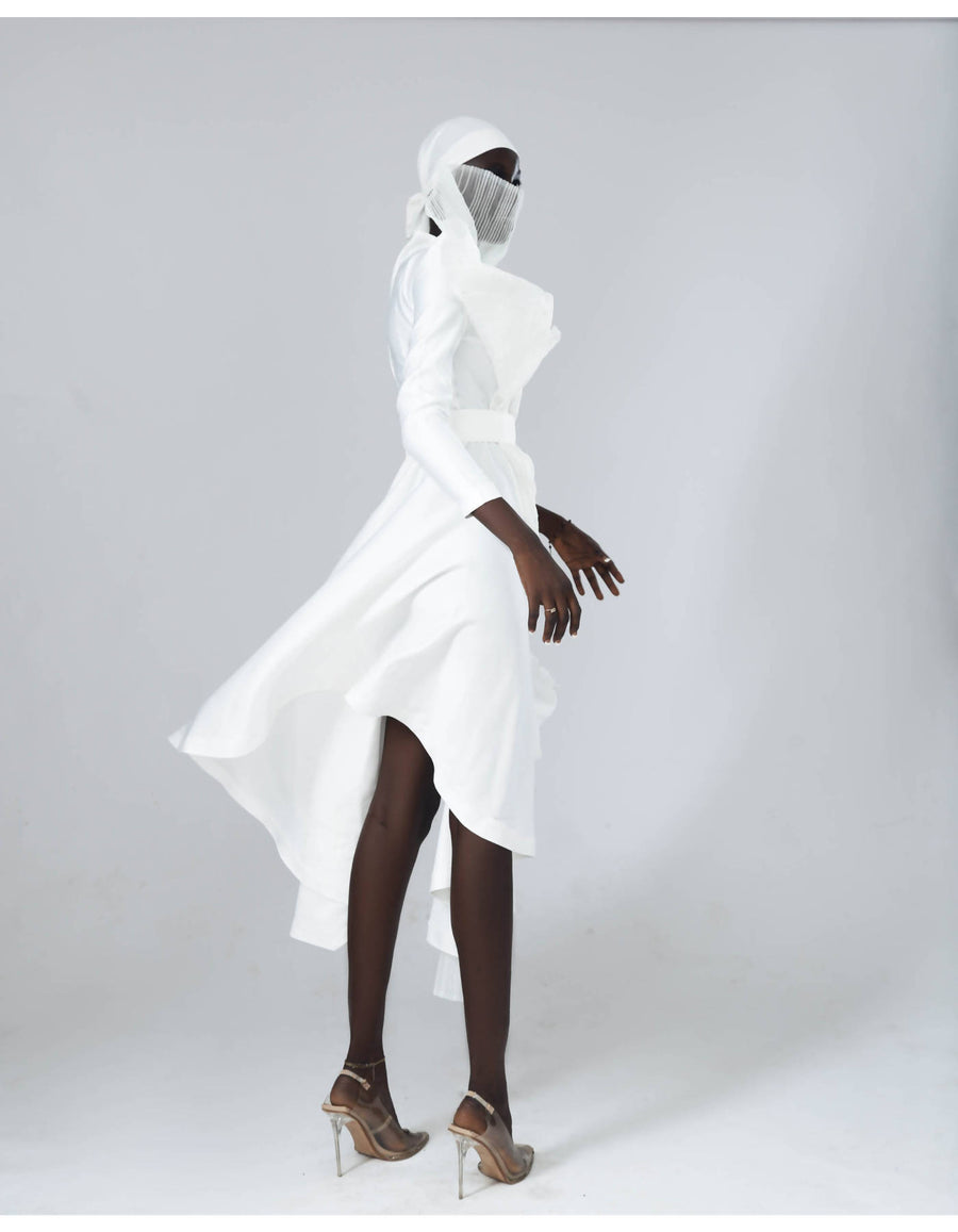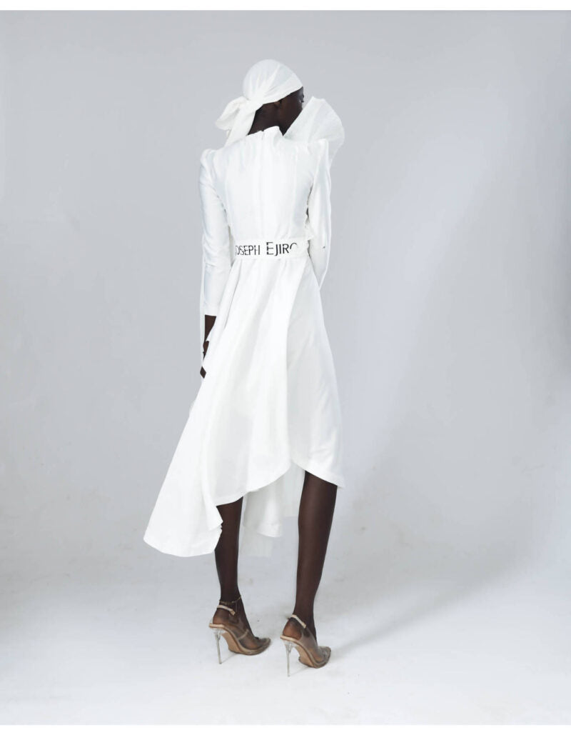 The Iditan Cut-Out Dress Is A Flared Short Dress With Bold Accordion Details At The Front Paired With The Joseph Ejiro Label Belt And Bold Cut-Out Details. This Dress Was Made From Recycled Fabrics. All Materials Were Sourced Locally And Produced In Lagos, Nigeria.