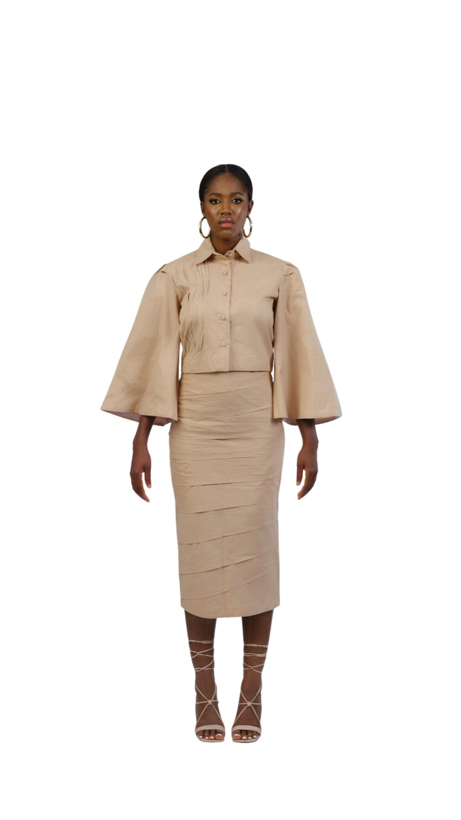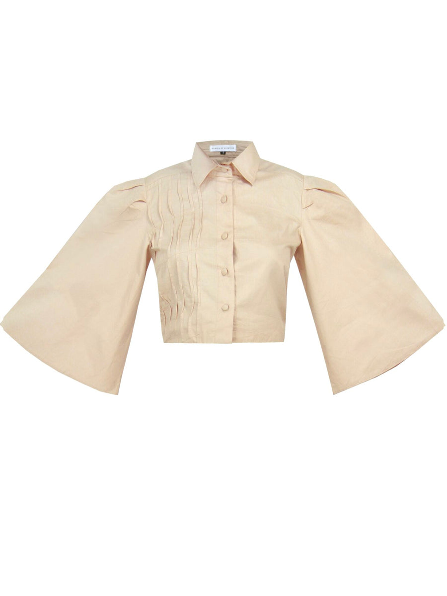 Our Chic crop top is a simplistic style and yet a great addition to your wardrobe. It is a versatile piece that can be worn to work when paired with basic black jeans, Or can be styled up for a night out in the mini Chic skirt. Made in breathable cotton fabric, it features vertical pin tuck details in the front right side, flare Sleeves lined for a bit of structure, and fabric cover buttons. It’s cut for a slightly loose fit, prioritizing the comfort of its wearer.