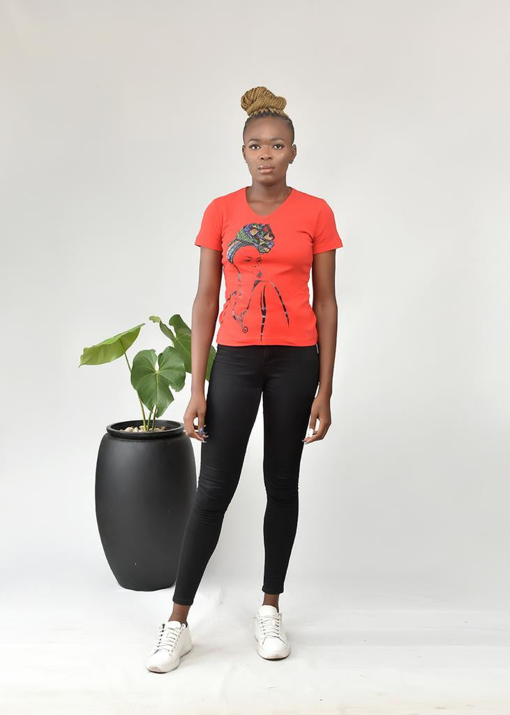 Aimas Borad V-neck T-shirt with beaded modern Gele woman