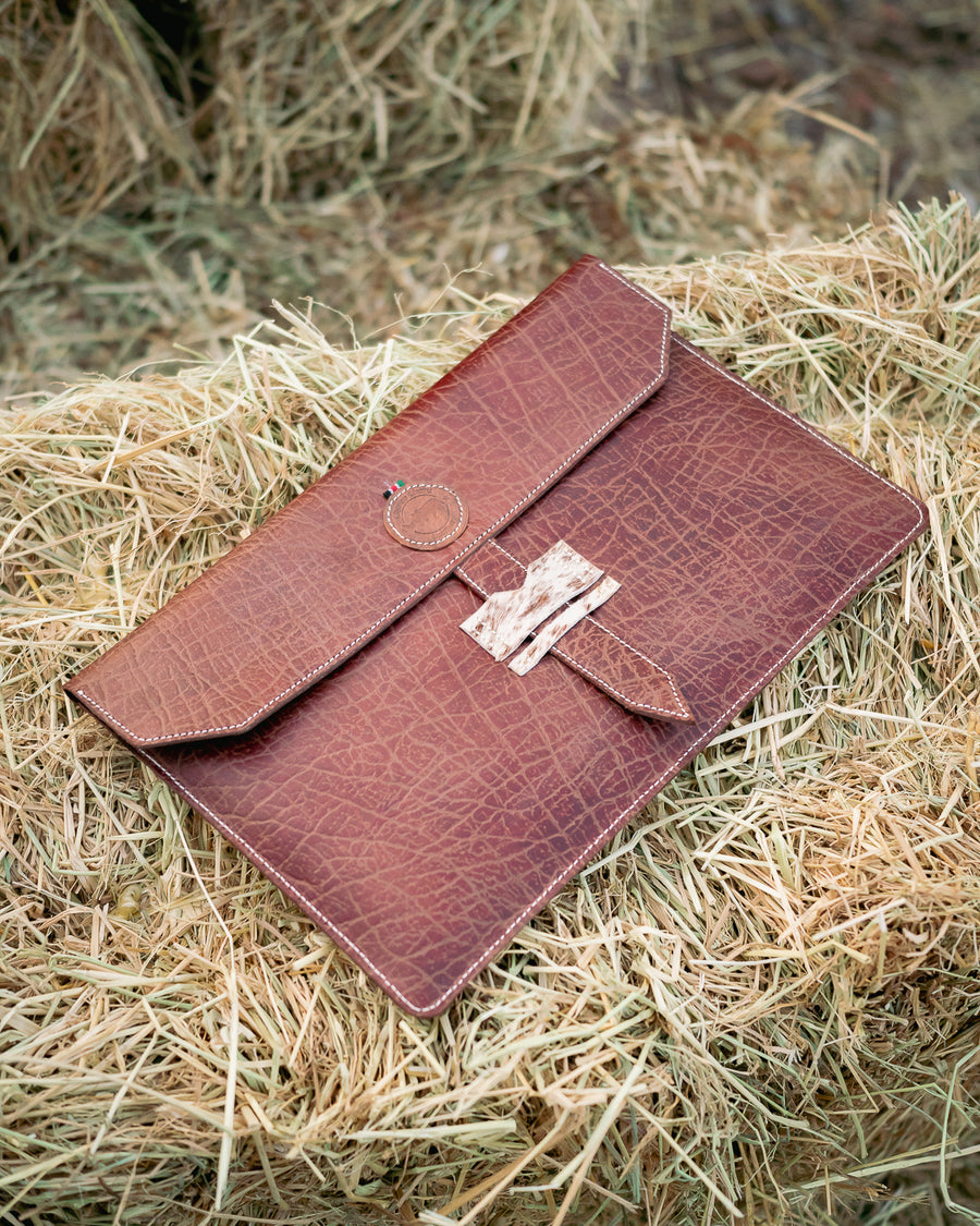 Ergonomic handle provides two-handed carrying, while the laptop bag design and removable carry strap add versatility. Crafted in Kenya with a secure zipper closure, this bag is made with quality leather for a sturdy and long-lasting build. Dimensions of H30cm x L40cm x W10cm complete the product.