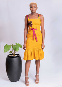 The 100% cotton construction of the Marcu Dress adds charm while being easy to maintain: machine washable up to 30°C, and iron inside out on a low temperature setting when needed. To uphold its quality, avoid tumble drying and bleaching. The Marcu Dress epitomizes Africa's culture and flair, a delightful way to express your appreciation for fashion and style.