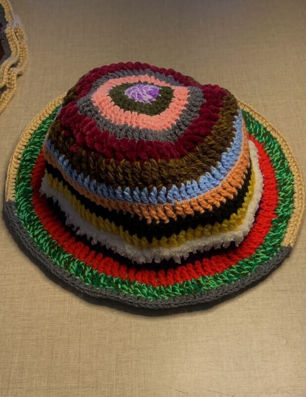 No two hats are ever the same, each carrying a distinct expression of the artistry behind scrap yarn. This meticulously crafted piece seamlessly merges style with functionality, boasting a dynamic pattern that injects boldness into your attire, complemented by a wide brim for sun protection.