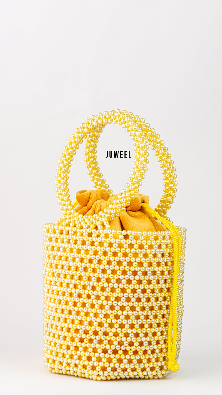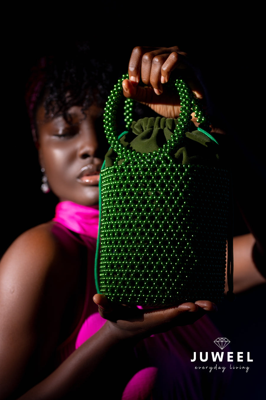 The Esi Bag is a square shaped handheld bag with a zipper. The bag is lined with suede to pop out the color of the beads. Inside the bag has a pocket to store smaller items.
