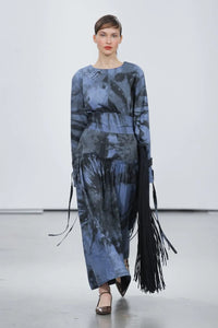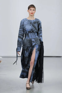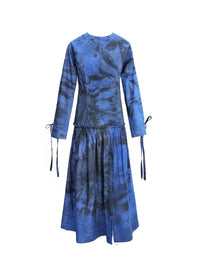 Tie-dye cotton dress. Features A dropped waistline, Long sleeves with bow details, Ruching, and a full skirt along the hip with a high slit. It also features a surprising and flattering back detail. Comes with a detachable belt. This dress is comfortable, you can create any look of your choice, casual and chic. If you are going for the statement look, this is right for you.