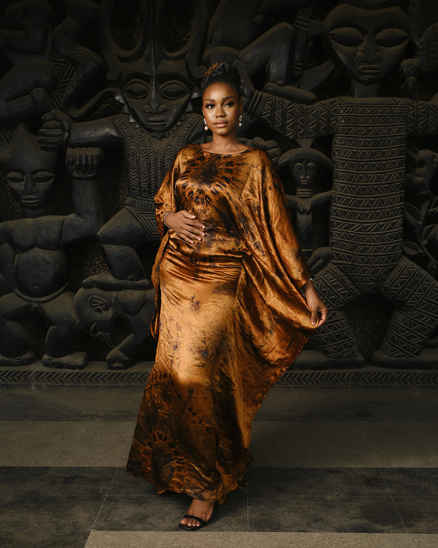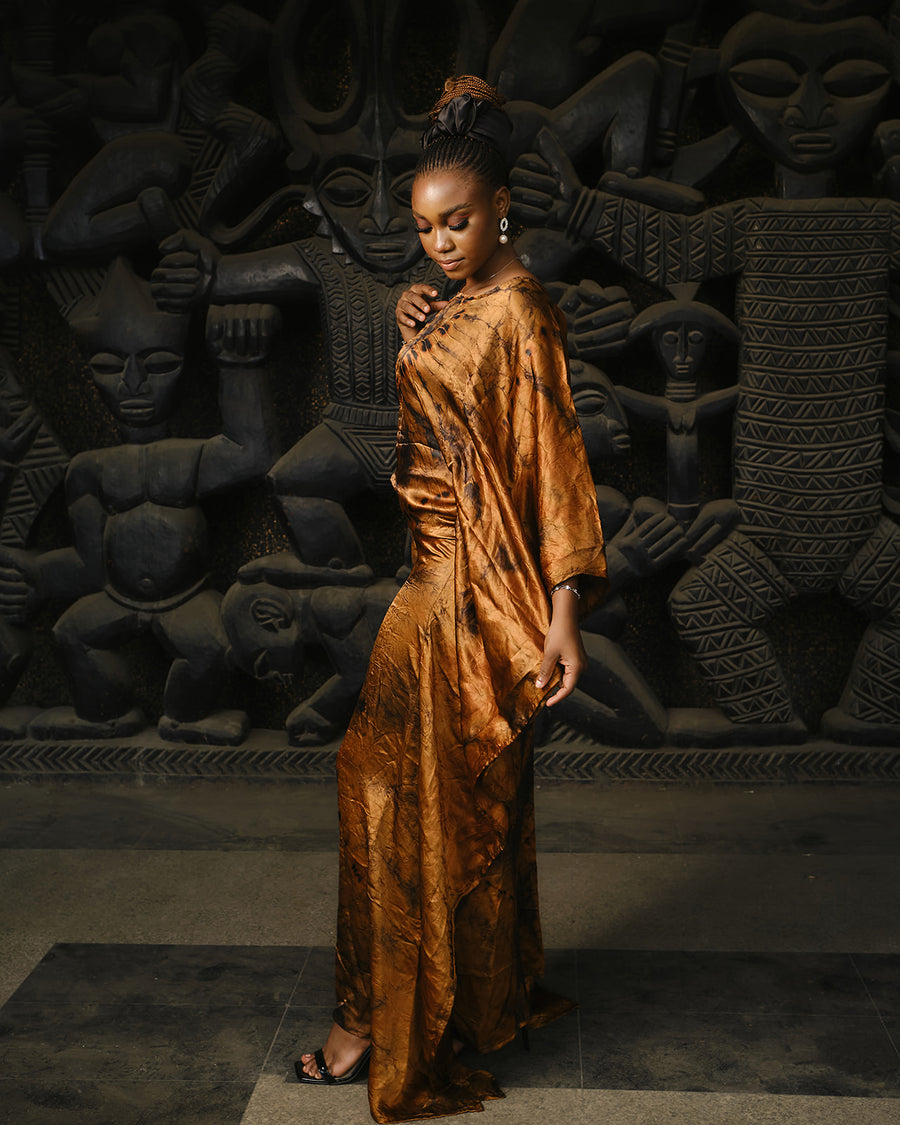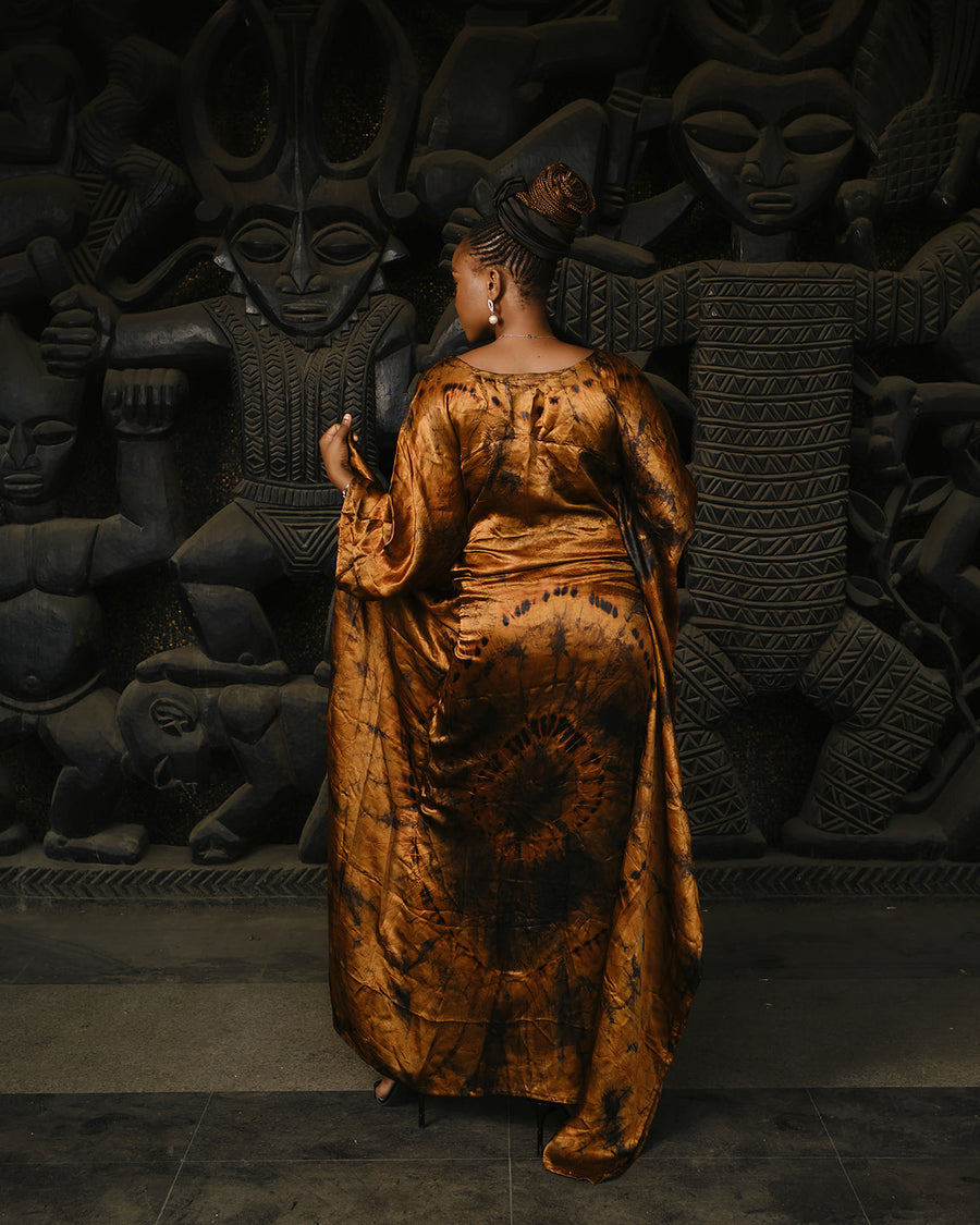 Bongani Golden Brown Silk Boubou Drapes Dress | ADJOAA