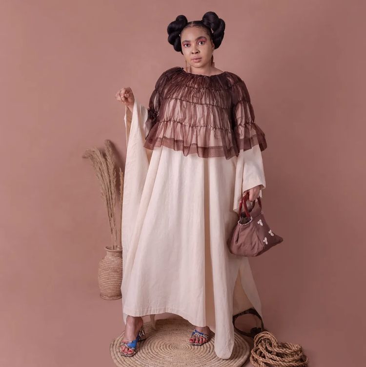 Mantu Organic Cotton Maxi Dress crafted by Bree The Label showcases a side slit and slip-on design and is tailored with a deadstock silk bazaar neck detailing. This piece is part of the Renaissance African Royalty Collection, crafted with lavish attention to detail.