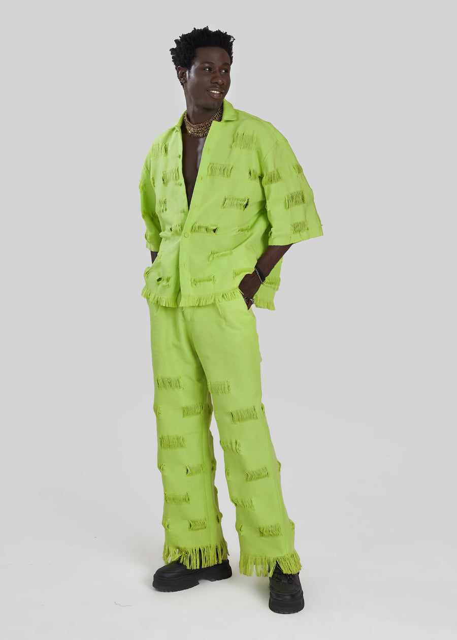 Boyedoe introduces the Busumuru II Shirts & Trouser, a genderless pairing crafted with our traditional handwoven smock and frayed detailing. This two-piece set is perfect for any occasion and embodies the concept of afro-luxury through its African heritage-inspired design. Boyedoe clothes celebrate Sun-sum (spirit), Silhouettes, Sustainability and Sophistication to create beautiful, timeless looks.