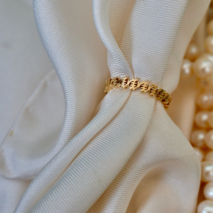 Discover the exquisite addition to Sahmani's collection - the Delicate Luxurious Adinkra Ring. This stunning piece showcases the revered Gye Nyame Adinkra symbol in a unique repeating design, blending seamlessly with your everyday style and ideal for stacking. Embodying the essence of tenacity and faith, this symbol serves as a powerful reminder that all things are possible.